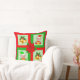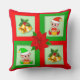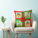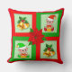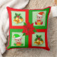 Christmas bells, poinsettia, elf on green & red cushion