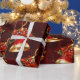 Set against the rich red background, the design evokes a sense of warmth and cheer, echoing the joyful spirit of the season. The red and gold combination symbolises the heart of Christmas celebrations, blending tradition and festivity in perfect harmony.