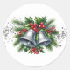 This small size sticker is shown with a festive Christmas holiday silver bells print.