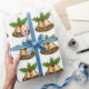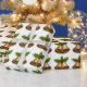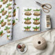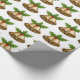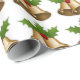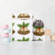 Christmas wrapping paper featuring a graphic pattern of Christmas bells with holly tied to the top.