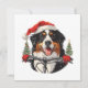 Cute illustration of a Bernese Mountain dog dressed as Santa Clause riding a bike. Perfect for pet lovers and dog parents during the holiday season.