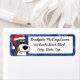 This super cute Bernese Mountain Dog cartoon has a red and white striped candy cane in his mouth, and wears a bright red Santa cap upon his head. In the background is a blue and white flurry of snowflakes, perfect for the winter. Absolutely adorable Bernese Mountain Dog address labels for the holiday season.