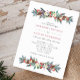 This beautiful holiday wedding invitation features green watercolor pine branches, with pine cones, red holly berries, cream coloured flowers, and green Christmas foliage.