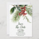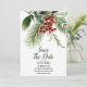 Announce your special day with the enchanting Christmas Berries & Pine Wedding Save the Date. Perfect for a festive winter wedding, this save the date card combines the vibrant charm of red berries with the rustic beauty of pine branches, capturing the magic of the holiday season.