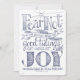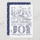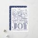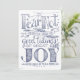 This Christmas design features the message from Luke 2:10, “Fear not: for behold, I bring you good tidings of great joy which shall be to all people.” The quote is a charming hand drawn typography, accented by sketches of pine branches, stars and leaves. The sketch is in a midnight blue and the reverse side of the card features an all-over pattern of hand drawn white stars set against a field of the same midnight blue. The centre of the design incorporates an open white space where you can personalise with your own message and names by using the easy provided templates.