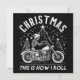 Cool "This is how I roll" biker Christmas design depicts a skeleton wearing a Santa's hat and riding a motorcycle. This simple yet eye-catching biker xmas design makes a nice gift for anyone who rides a motorcycle and likes skeletons and funny Christmas puns.