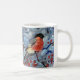 Christmas bird and snow , bullfinch on a branch with red berries, it's snowing vintage painting