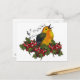 Christmas Bird Singing With Hollly, Berries Holiday Postcard