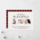 Christmas blessing multi photo plaid holiday card. Change the background colour to customise the card.