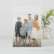 This elegant yet modern holiday photo card features white calligraphy script over a full-bleed single, horizontal photo. The greeting on the front says "Christmas Blessings". This design accommodates a single, horizontal photo on the front of the card. On the reverse side you will find a simple grey and white diagonal stripe pattern which can be removed or customised. You can also add another photo or text to the back by selecting "customise design further".