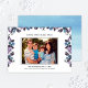 Elegant "Christmas Blessings" family photo greeting card features a holiday watercolor design in cool blue and purple winter berry shades framing a horizontal photo and modern custom text that can be fully personalised. A soothing blue ombre watercolor pattern dresses up the back of the card.