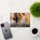 "Christmas Blessings" appears in gold foil calligraphy script lettering, overlaid on a horizontal or landscape orientated photo. Customise this beautiful holiday card design with your family name and the year along the bottom.