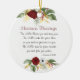 Christmas Blessings personalised ceramic ornament depicts elegant winter florals with a simple red and white rose. berries and greenery. It features the Aaronic Blessing from Bible Verse Numbers 6:24-26, "The Lord bless you and keep you; The Lord make his face shine on you and be gracious to you; The Lord turn his face towards you and give you peace." The back names and greeting can be customised to the details of your choice.