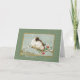 Holiday greeting card with a painting of a two vintage birds sitting in the snowfall on a holly branch wishing Christmas Blessings to all.