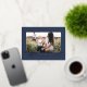 Christmas blue 1 photo botanical script foil holiday postcard