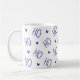 Chic, elegant blue and white Christmas coffee or hot cocoa mug. Blue hearts, minimalist design with Ho Ho Ho text on white mug. Modern, cute design fit for a joyful merry Christmas and a snowy winter new year celebration. This chic white christmas coffee mug is an elegant modern home decor item that makes a stylish, cute Christmas gift or stocking stuffer.