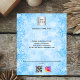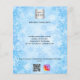 A light blue background with snowflakes, snow crystals. Personalise and add your business logo, name, address, your text, add your Instagram account name to the QR code.