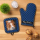 Christmas Blue Plaid Personalised Pet Dog Photo Oven Mitt & Pot Holder Set