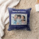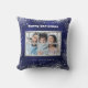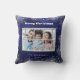 A deep blue background decorated with faux silver glitter, sparkling stars. The blue colour is uneven. Personalise and add your own photo, name and a year. With the text: Merry Christmas. A window overlay over your photo.