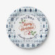 Customisable Merry Christmas with traditional vintage graphic (Holly leaves) paper plate. Your name and message on beautiful Lapland style pattern in blue and white background. Matching personalised Christmas Paper napkin and more... Other models are available.