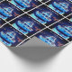 A fishing boat on the water is decorated with blue and white lights for Christmas in this fun holiday scene