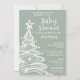 Christmas tree Boho sage green baby boy shower invitation with a cute whimsical fun Gender Neutral baby shower invitation for a festive Holiday baby shower.