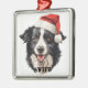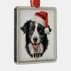 CHRISTMAS BORDER COLLIE DOG WITH SANTA HAT METAL ORNAMENT