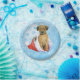 Celebrate the holiday season with a cute Border Terrier puppy sitting in a Santa hat amid snowflakes. Happy Howlidays!