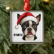 CHRISTMAS BOSTON TERRIER DOG WITH SANTA HAT METAL ORNAMENT