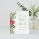 Beautiful affordable Save the date cards featuring hand-painted botanical watercolor illustrations of winter greenery, pine and spruce branches, cones and holly berries. Perfect choice for Christmas holiday themed weddings.