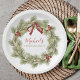 Christmas Botanical Wreath Red Holly Berries Leaf Paper Plate
