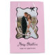 These adorable holiday gift bags feature your favourite photo in a trendy black wavy frame with a whimsical bow, on an chic blush pink background. Modern script says "Merry Christmas."