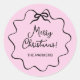 These adorable coquette holiday stickers feature a trendy, black wavy frame with a whimsical retro ribbon bow, on a chic blush pink background. Modern script says "Merry Christmas."