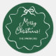 These adorable holiday stickers feature a trendy, white wavy frame with a whimsical retro ribbon bow, on a festive green background. Modern script says "Merry Christmas."
