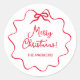 Christmas Bow | Wavy White with Red Classic Round Sticker