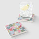 The coasters are gorgeous, a quality feel and heavy weight. They look like a precious archeological find. A rustic stone juxtaposed with a modern floral black and white print. I like the way the print goes slightly imperfect on the cut stone edges giving them a kind-of natural beauty.