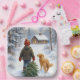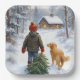 Christmas Boy In Snowflakes With Pine Tree and Dog Paper Plate