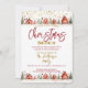A gorgeous Christmas brunch party invitation. This glamourous gold and red holiday design features a snowy street scene with houses and trees.. Easy to customise with your own Holiday brunch or festive party details.