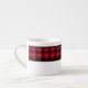 Created to coordinate with the red and black buffalo plaid china plates. Red and Black buffalo plaid wide band at top with black accent trims over white mug.