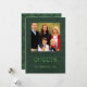 Trendy green damask pattern burlap Seasons Greetings card with family photo placeholder customisable to your specifics.