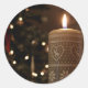 A beautiful photograph of a Christmas candle by the tree lights.