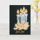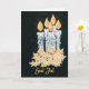 A chic Christmas Card with the greeting in Swedish and five candles with holly, hand-painted in gold and silver paint on a starry black background.