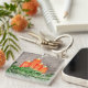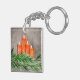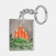 A watercolor painting of Christmas candles and evergreen pine boughs adorns this festive keychain!