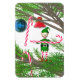 Magnet with my image of a cute little elf dressed in red and green putting candy canes on a Christmas tree.