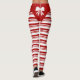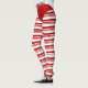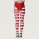 Festive holiday candy cane white ribbon and red stripes leggings.