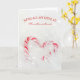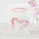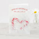 Red and white striped Christmas candy cane heart in white fur with bokeh white hearts