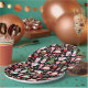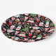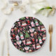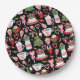 This cute plate is versatile and can be used for giving gifts or art and craft projects. The design features Christmas trees, hot cocoa, candy canes, sweets and cakes on a black background.