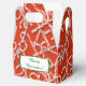This is a pretty box to hold that special gift! It features a repeated bright red and white candy cane pattern which covers the entire outside of the box. One side has a green lined white banner with your customised text in holiday green. Festive and colourful!