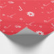 White candy canes, stars and holly leaves cover this red Christmas wrapping paper.