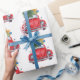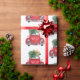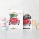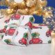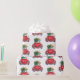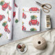 Festive and modern this watercolor pattern features red beetle style cars topped with Christmas tree and presents on white background.